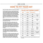 • Fits snug – we suggest you size up for the traditional Tilley fit (2 fingers inserted between hat and head)