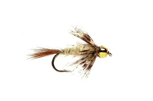 Size 14 A worthy general purpose weighted nymph with a bit of wing to give it presence in the water.