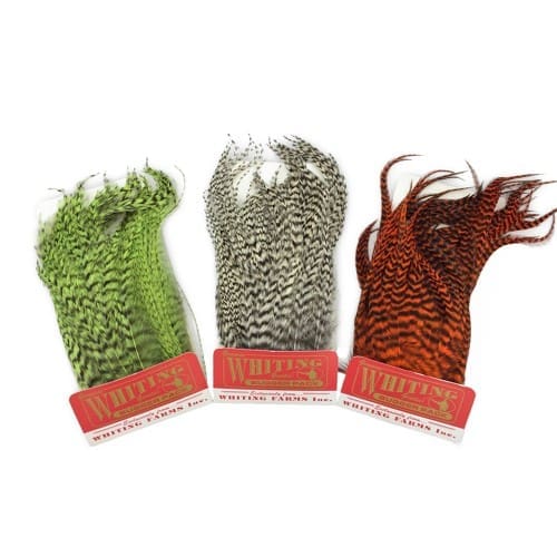 Whiting Farms Bugger Packs offer long, tapered hackle densely barbed on a supple quill, making this the best wooly bugger hackle available. Great f...