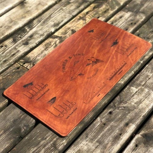 Tie your flies in style with our new fly tying mat! • Natural veg tan leather.• Stained and buffed by hand.• Salmon Hook size chart.• Spey Hook siz...