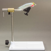 The large stable pedestal base included with the JS2-G2 will hold this tool where you place it, and the non-marking feet protect the surface you set it on. For additional stability, the base also comes with two mounting holes that will accept up to 5/16” fasteners to mount the base to your tying bench. The steel base is powder coated white for a surface that will last and provides a backdrop you can see your materials against. The base also includes an integrated hook/bead pocket with rounded edges for ease of removal, and our 3/8" accessory shaft mounting holes (accessory shaft not included). The base is designed to accommodate the 1/2" vise riser shaft of the JS series products, which is locked in place with a large comfort-grip hand knob.
