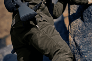 Like the Hawker Shell II jacket, the trousers are made from a soft, hi-stretch, but hardwearing, fabric that naturally follows your movements. The trousers feature our own waterproof, windproof and breathable SEETEX® membrane, which has a hydrostatic head of 10,000 mm. They also have ventilation zips on each hip, to help keep you cool when your activity level rises. One particularly useful feature of the Hawker Shell II trousers is the inner honeycomb surface. This allows for better air circulation and means that any moisture that accumulates inside the trousers is distributed over a greater area and evaporates more quickly. A small detail perhaps, but one that makes a big difference, when exertion levels are on the rise. The trousers have front pockets and a large pocket on the left thigh, all with waterproof zips, to keep your belongings safe when you are mobile. On the left hip is a strong D ring, for attaching various items. There are strong adjustable velcro straps at the ankles to fit the trousers closely around your boots. A durable reinforcing band is sewn inside the trousers at the ankles, to protect this high-wear area.