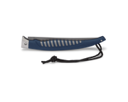 Safe, reliable and durable. This folding fillet knife has a titanium coated blade and is designed for added flexibility and corrosion resistance, a rubberized anti-slip grip and a stainless steel safety guard. The convenient size when folded makes this knife convenient to carry on any fishing trip. Length 7 1/4" closed. Imported.