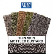 Thin Skin is .004" thick and can be used on flies past size 18. It is stretchable and transluscent with a matte finish on one side and a shiny finish on the other. The backing makes it easy to cut to width. Thin Skin Mottled Bustard is the sweet spot of a bustard feather printed on thin skin. It is a fine looking pattern great on stoneflies and nymphs.