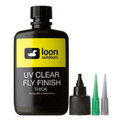 Apply Fly Finish to fly while indoors or shaded from the sun. Use applicator and/or rotating vise to form into the ideal shape. Expose to sun light or use Loon’s UV Mini Lamp or UV Power Light to cure. In direct sun (or when using Loon’s UV Mega Light or UV Power Light) hardening should take approximately 15 seconds.